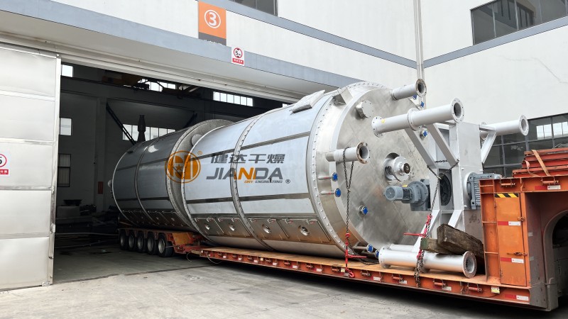 此次发往宁德的四台盘式干燥机(PLG-3000x20),用于干燥电池材料三元前躯体,电池材料专用盘式干燥机针对离心机出来的氯化锂、碳酸锂、氢氧化锂、氢氧化镍、碳酸钴和三元材料等物料,我公司开发的盘式干燥机是在间歇搅拌传导干燥器的基础上,综合了一系列先进技术,经过不断改进而研制开发的一种多层固定空心加热圆形载料盘、转耙搅拌、立式连续的以热传导为主的干燥设备。
